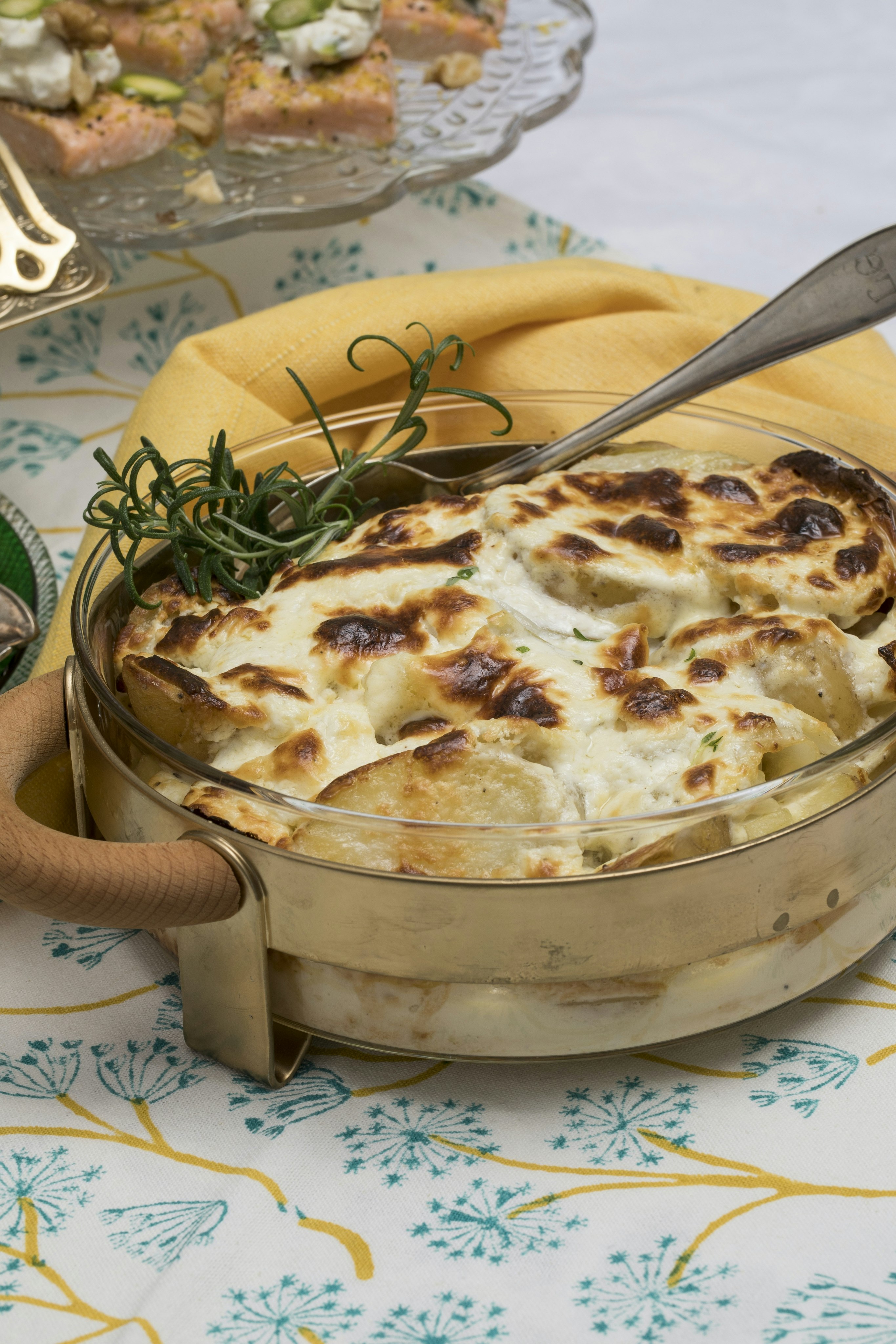 Varva potatis purjolök vitlök och örter i. Välj mjölig potatis för att få till den godaste potatisgratängen till kött eller kyckling. Varva potatis lök salt peppar och ost i en ugnssäker form och avsluta med ost.
